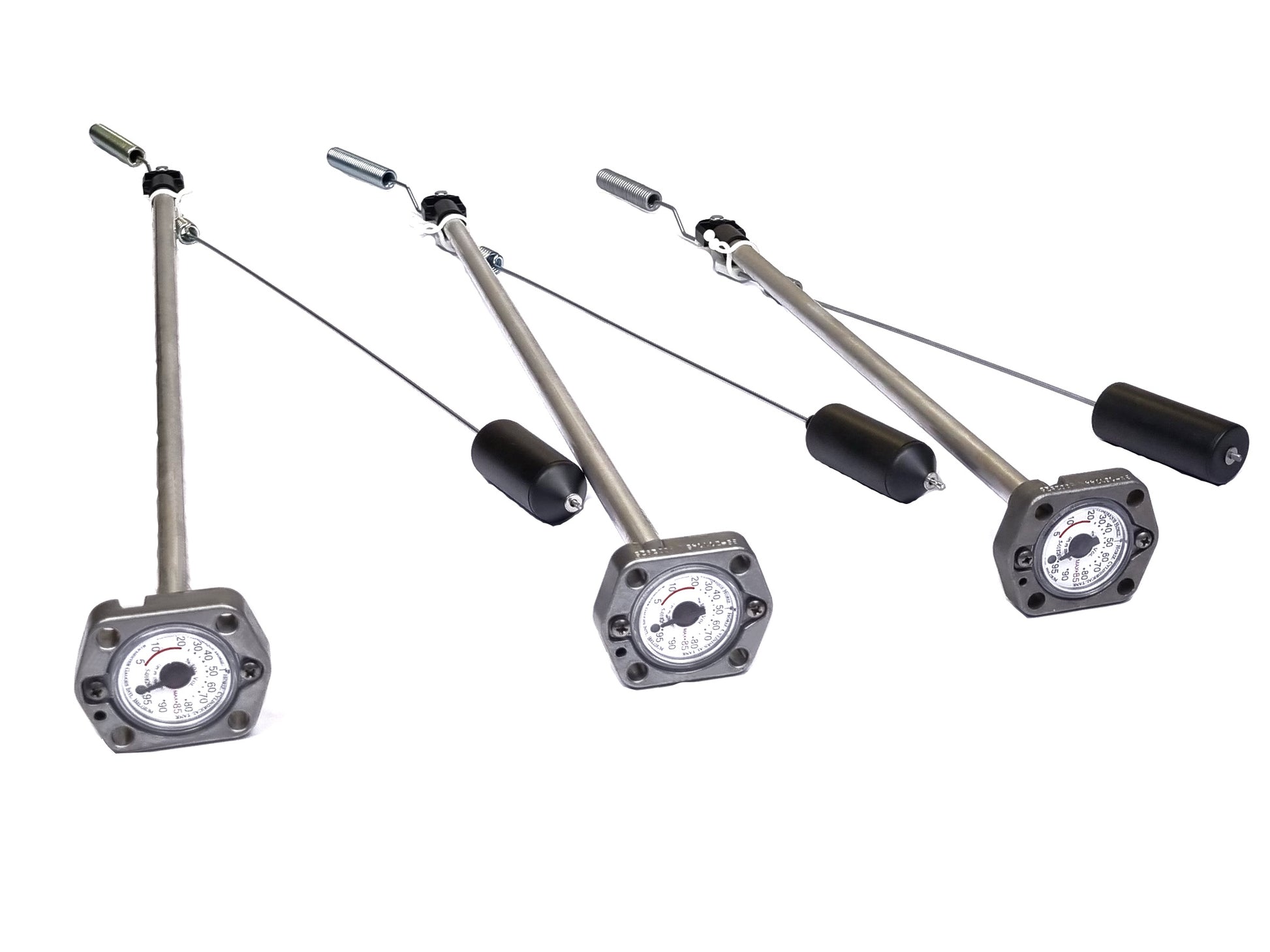 This gauge is equipped with a needle dial reproducing the movement of the float inside the tank.